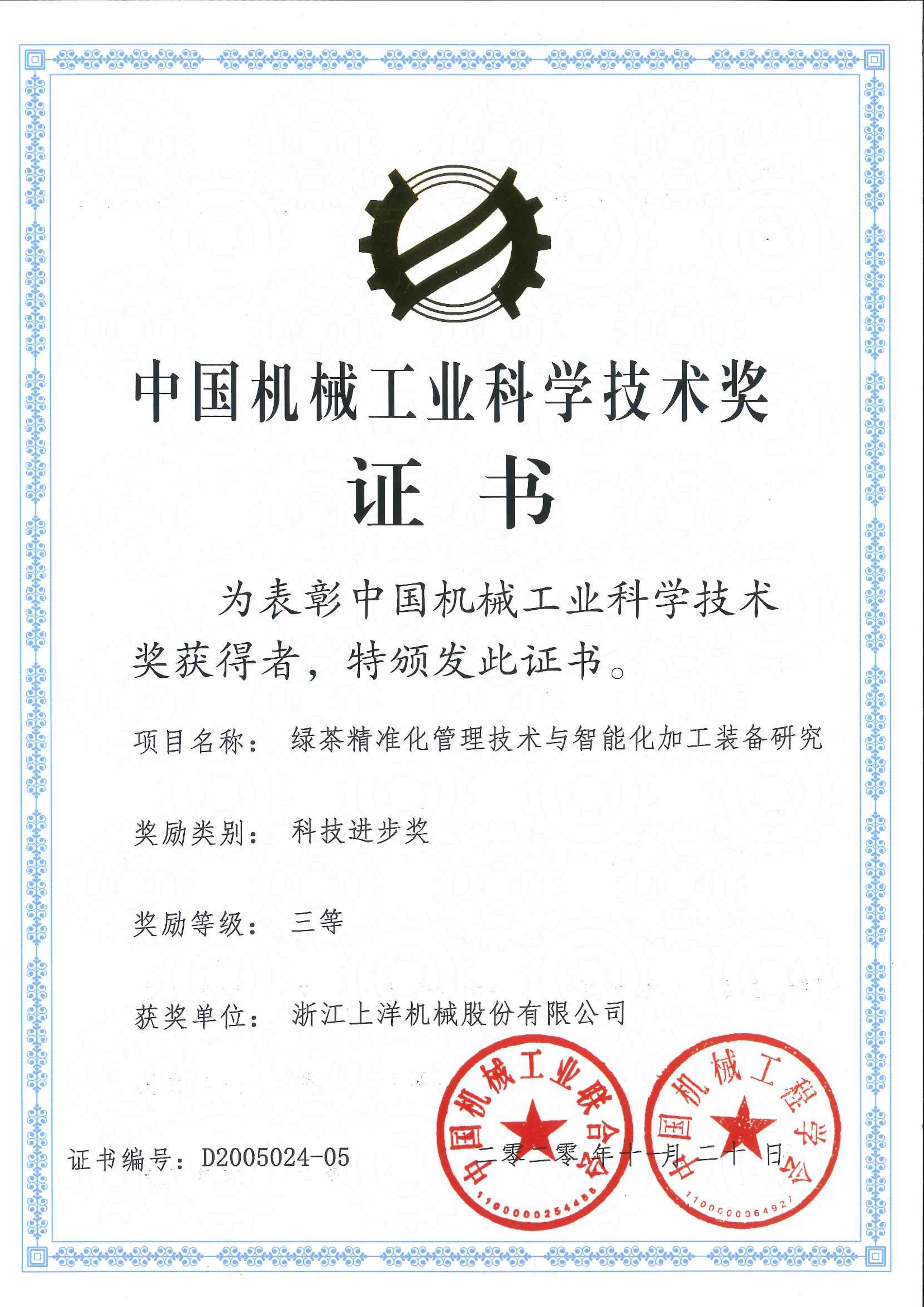 2020年中國機(jī)械工業(yè)科技進(jìn)步三等獎
